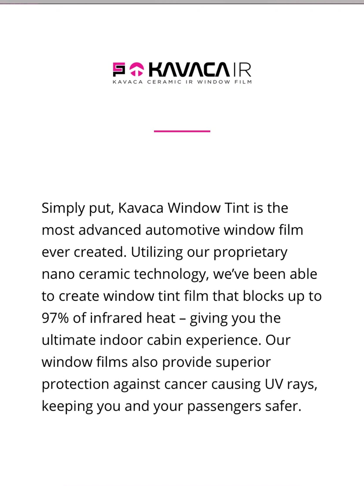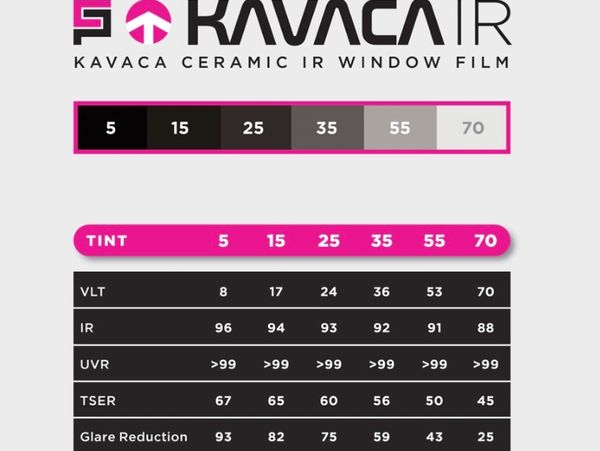 If your looking for the best performing window film on the market this is it! Kavaca will block out more heat than your standard window film. We have a heat box demonstration at our location to show how well this ceramic window film really performs.